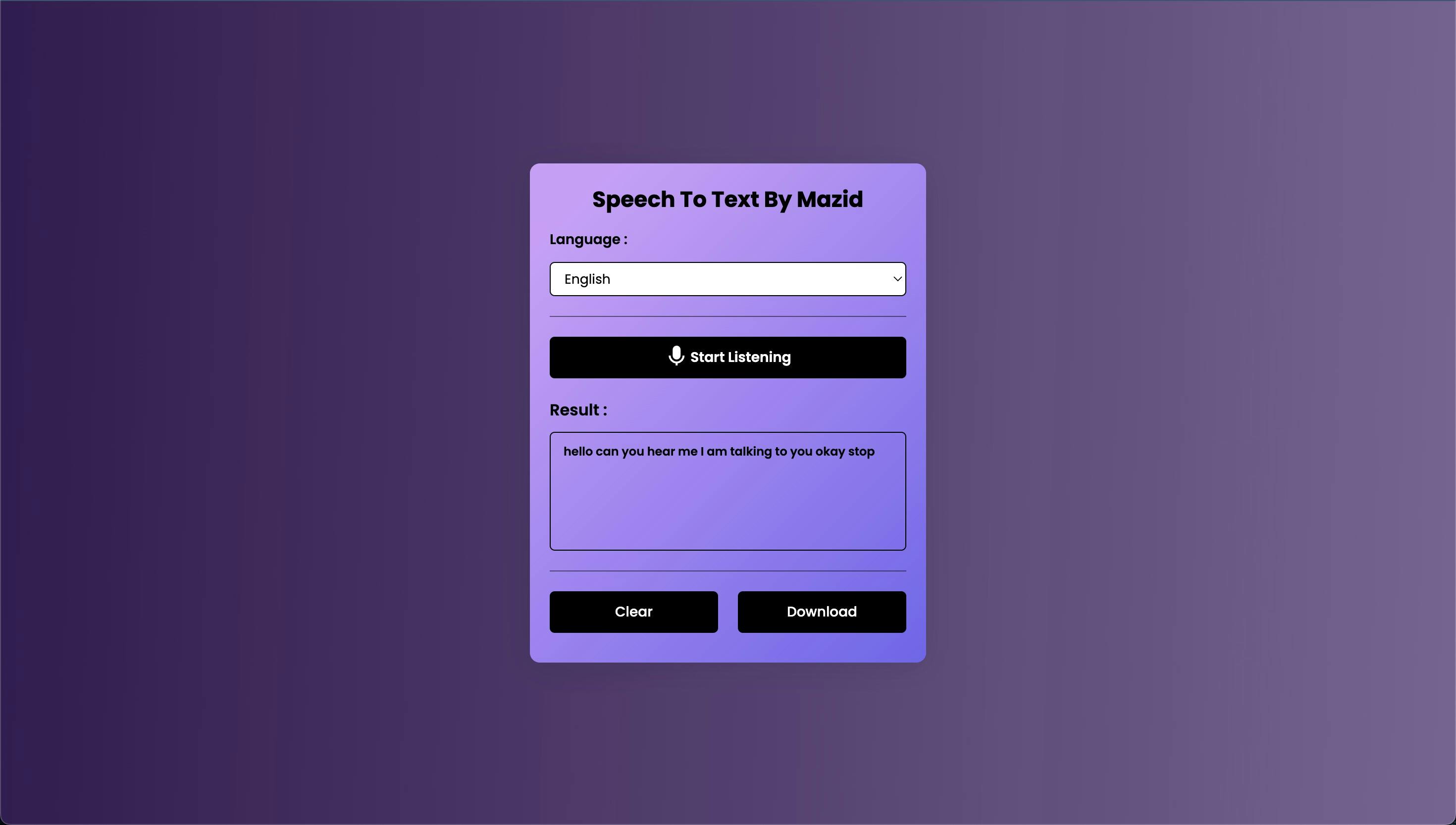 - LINK :- https://mazid-speech-to-text.netlify.app/